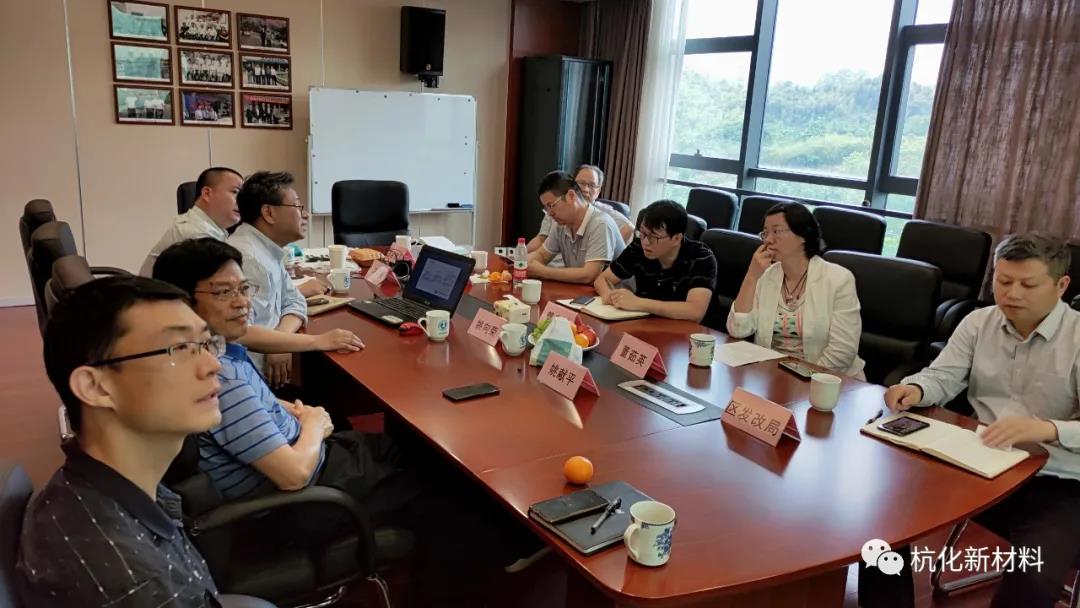 5月12日,杭州市發改委資環處曾東城處長、夏碧天、董茹英,杭州市經信局綠色制造處副處長劉元永,臨安區發改局謝東明一行蒞臨浙江省生物基全降解及納米材料創新中心交流指導。創新中心領導姚獻平、趙文彥、姚向榮、許洪根、劉崗等參與交流。